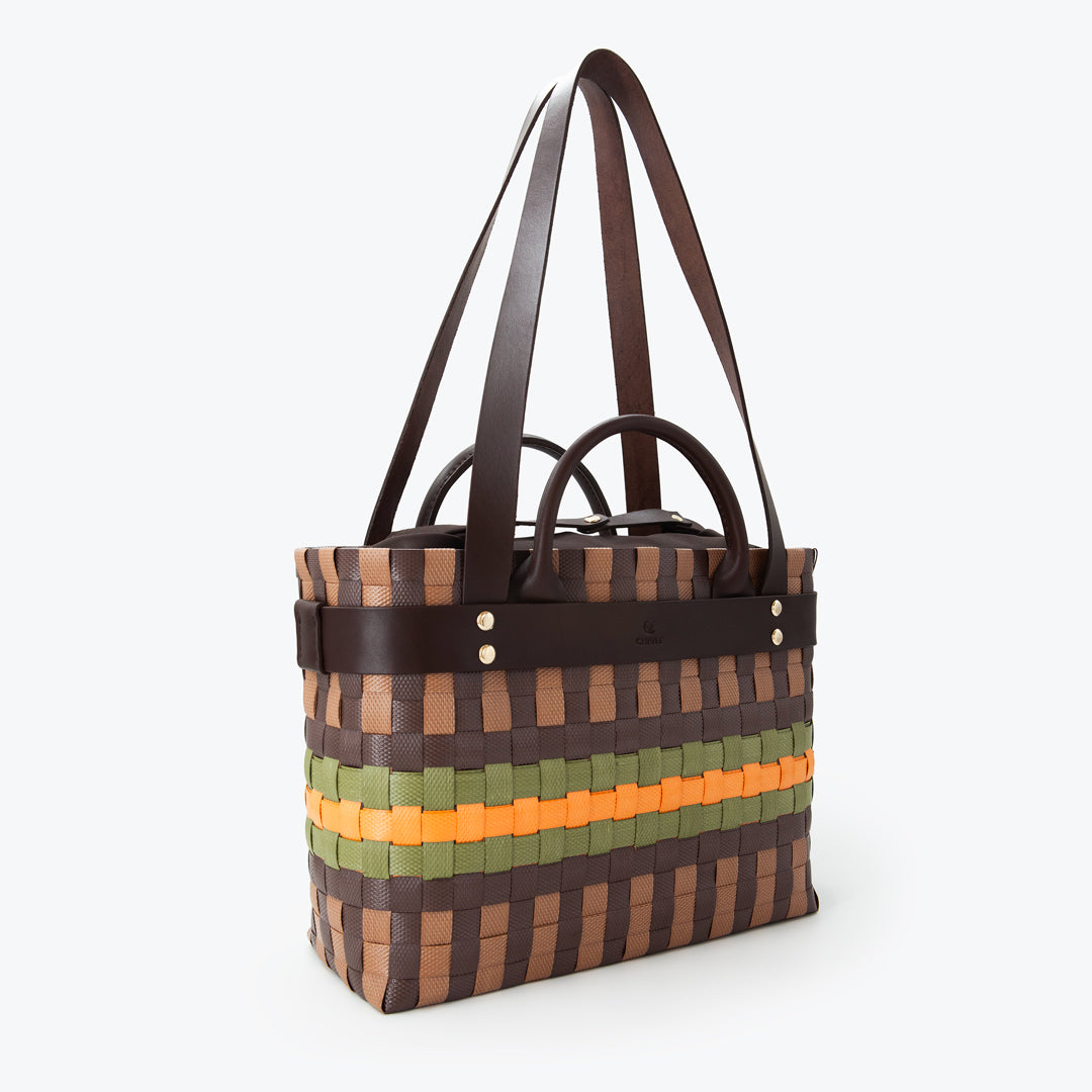 Mumuda Basket çantalarımızın gövde kısmı, geri dönüştürülebilir plastik şeritlerden elde örülüyor. Bu malzeme hem hafif hem de dayanıklıdır. Tutacaklar, askılar ve deri detaylar ise tamamen naturel vegetal deri ile elde dikilerek tamamlanır. Tüm aşamaları el işçiliğiyle üretildiği için her çanta kendine özgüdür ve ufak ölçü farklılıkları olabilir.