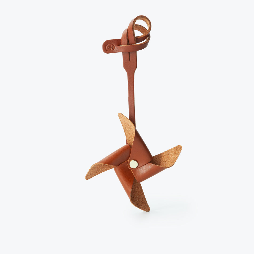 Doğal deriden, tamamen elde şekillendirilmiş rüzgar gülü çanta süsü.
